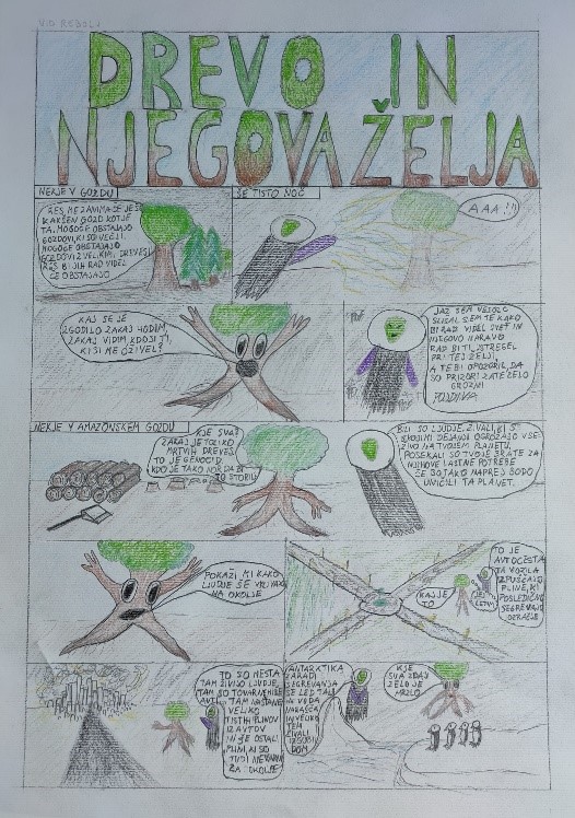 Letos smo se z dijaki udeležili nagradnega stripovskega natečaja z naslovom Gozd in podnebne spremembe, ki ga je razpisal Gozdarski inštitut Slovenije. Dva stripa, ki sta ju ustvarila Lana Plot iz 1.d in Vid Rebolj iz 1.a, sta bila izbrana za razstavo na Gozdarskem inštitutu v Ljubljani.