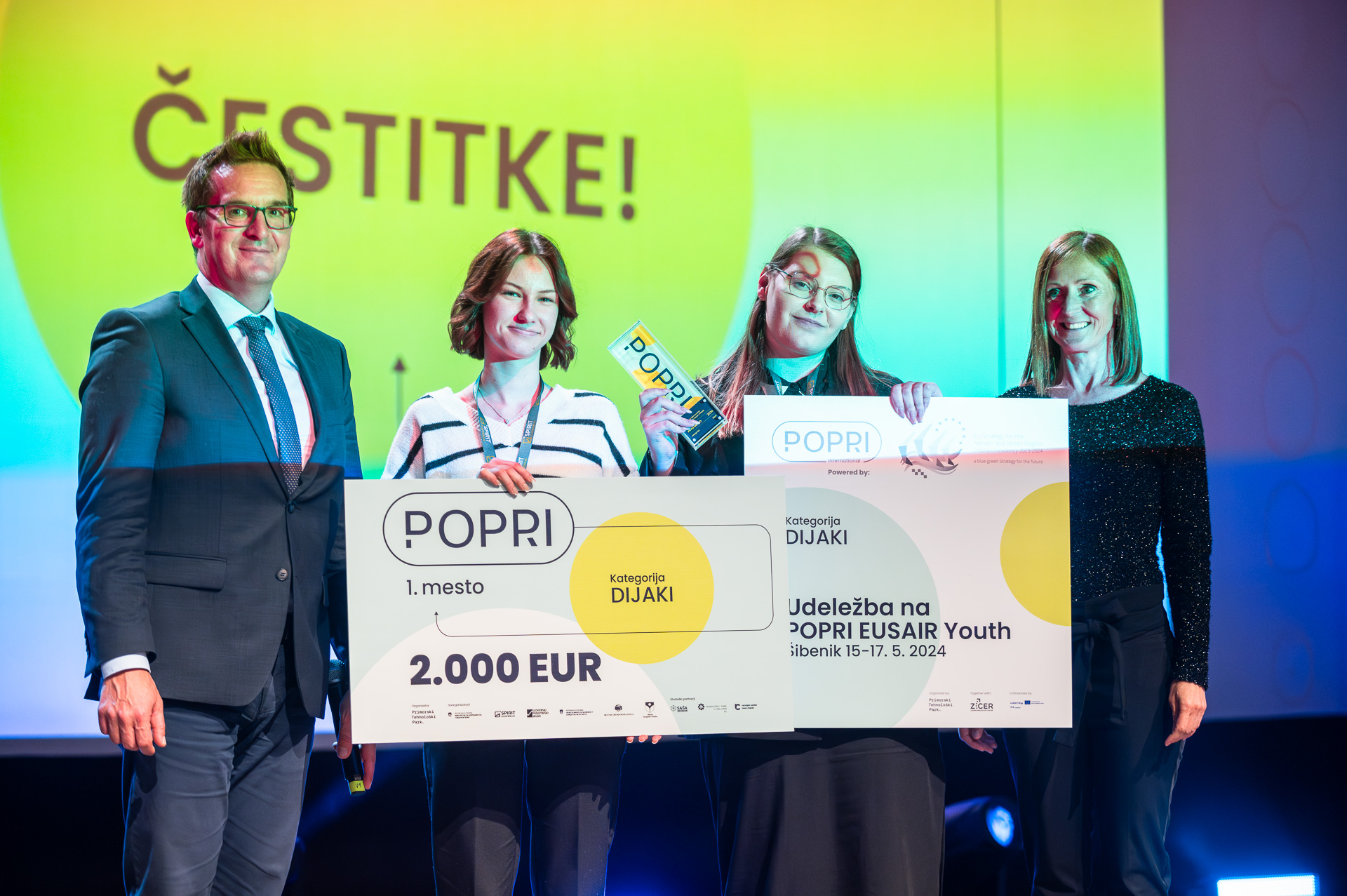 Kot zmagovalki imata možnost sodelovanja na tekmovanju GENIUS OLYMPIAD v ZDA in na mednarodnem tekmovanju EUSAIR POPRI YOUTH v Šibeniku, Hrvaška, prejeli pa sta tudi 2000 EUR iz nagradnega sklada, ki ga zagotavljajo soorganizatorji tekmovanja: Ministrstvo za gospodarstvo, turizem in šport; SPIRIT Slovenija, javna agencija za spodbujanje investicij, podjetništva in internacionalizacije; Slovenski podjetniški sklad.