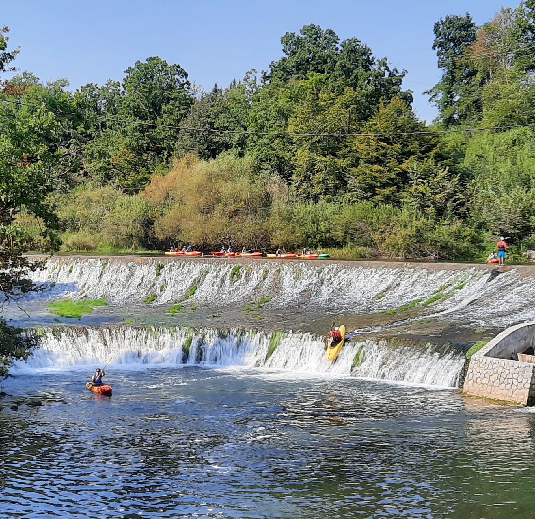 V torek, 15. 9. 2020, smo se dijaki 4. a letnika po pouku odpravili v Male Lese, kjer nas je čakalo adrenalinsko doživetje. Vožnja s kajaki po reki Krki. Po bitki z neoprensko obleko in lovom ravnotežja na vodi, smo odveslali proti Zagradcu. Tu pa smo naleteli na jez, s katerega se je bilo potrebno spustiti in ni uspelo vsakemu ohraniti ravnotežja. K sreči je bil dan vroč. Dan smo zaključili utrujeni in s prijetnimi spomini.