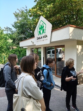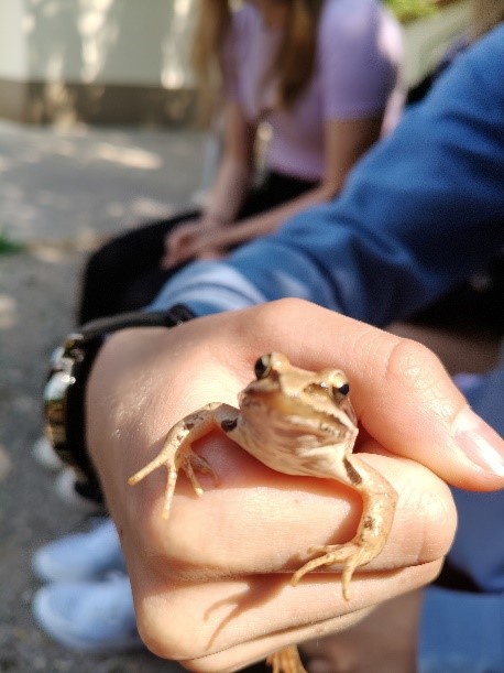 V torek, 10. junija, se je dneva z narovoslovnimi in likovnimi vsebinami udeležilo 6 dijakinj. Naš cilj je bila Žabja hiša v Mali Račni pri Grosuplju. Tam nam je vodička predstavila naravoslovni center z Radenskim poljem, z njegovimi posebnostmi, rastlinami in živalskimi vrstami. Radensko polje je kraško polje, najbolj severno ležeče in tudi najmanjše. S svojimi pritoki tvori značilno obliko z estavelami, (na fotografijah je največja estavela - voda prihaja in odhaja skozi zemljo) in požiralniki, ki vijugajo skozi pokrajino. Delavnica z dvoživkami nas je navdušila z žabicami in pupki. Po ogledu največje estavele na Radenskem polju smo odšle k ribniku, kjer smo se posedle okoli ribnika in se lotile slikanja. Tema slikanje je bila povezana z naravo, živalmi, rastlinami in z vsem, kar smo videle in doživele v dnevu.