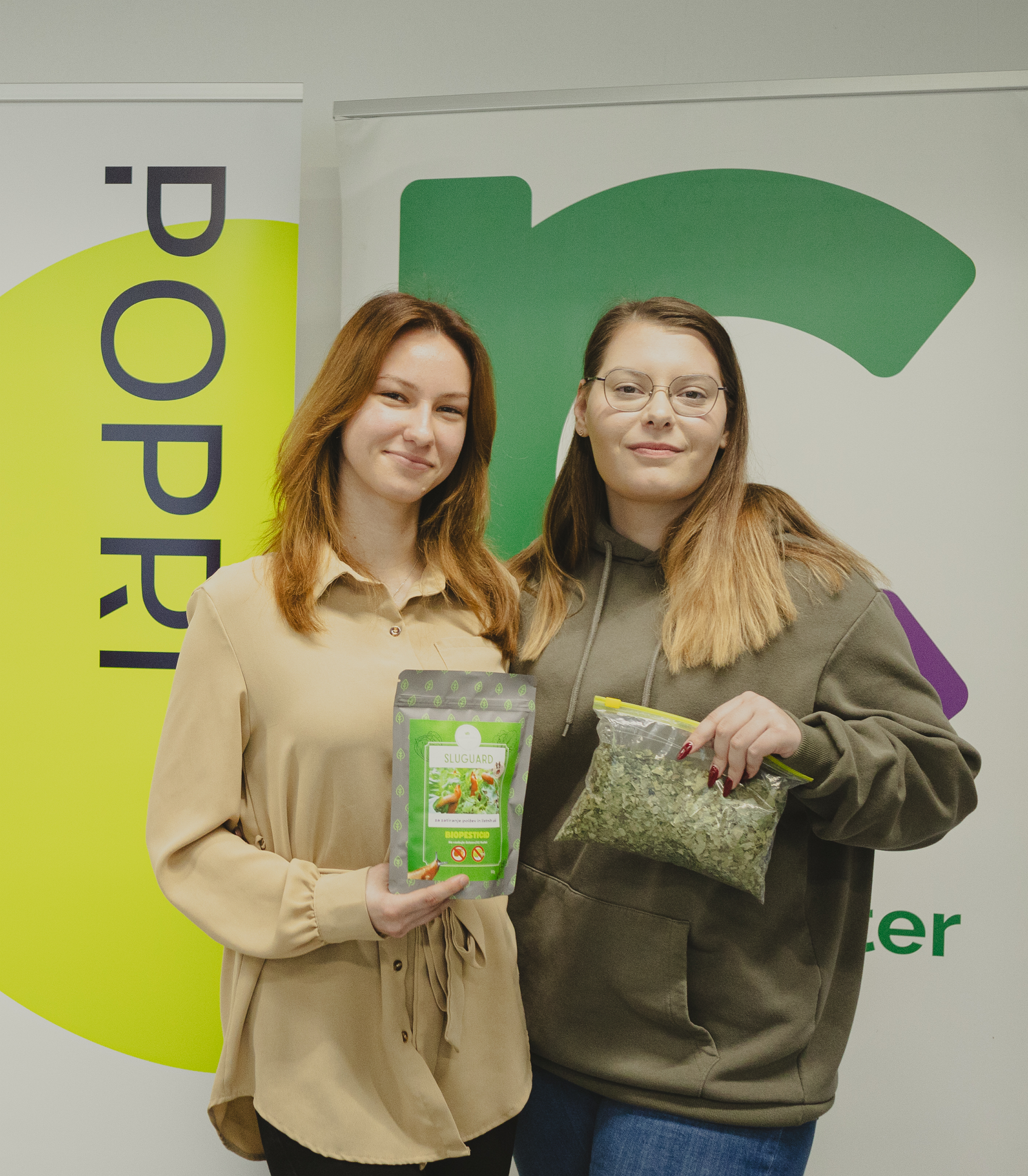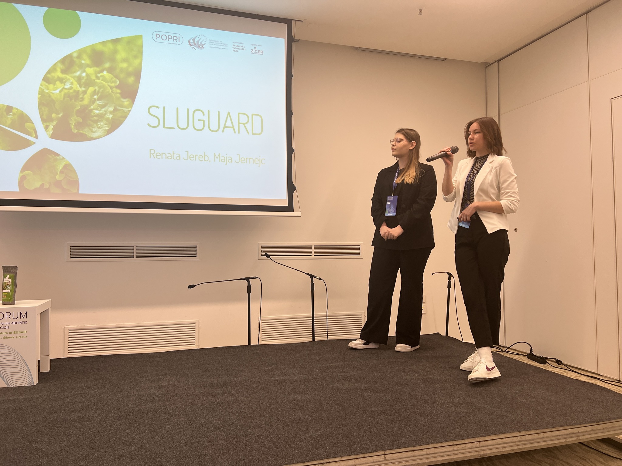 Dijakinji Kmetijske šole Grm in biotehniške gimnazije, Maja Jernejc in Renata Jereb, sta zmagali na mednarodnem tekmovanju v podjetniških idejah mladih EUSAIR POPRI YOUTH, ki je potekalo od 15.–17. maja 2024 v Šibeniku na Hrvaškem. Maja in Renata sta razvili popolnoma naraven in inovativen ekološki pripravek SLUGUARD, ki se uporablja za zatiranje polžev in listnih uši. Glavno učinkovino pripravka tvori mešanica iz tujerodnih invazivnih rastlin, ki rastejo v Sloveniji. Naravni pripravek SLUGUARD je primeren za vrtičkarje in kmetovalce (tudi za ekološke pridelovalce), ki želijo na svojih obdelovalnih površinah uporabljati učinkovite in naravi prijazne pripravke. Pripravek se bo prodajal v dveh oblikah: SLUGUARD Snailie je namenjen uporabnikom, kateri želijo polže in listne uši odgnati iz svojih površin, in SLUGUARD Quickill, ki je namenjen uporabnikom, ki se hočejo polžev in listnih uši znebiti. Pri raziskovalnem delu v laboratoriju je bila njuna mentorica Jana Goršin Fabjan, podjetniško idejo pa sta razvili s pomočjo mentorjev v okviru šolskega podjetniškega krožka (Mitja Turk) ter Razvojnega centra Novo mesto (Janez Gorenc, Anja Hrastnik).