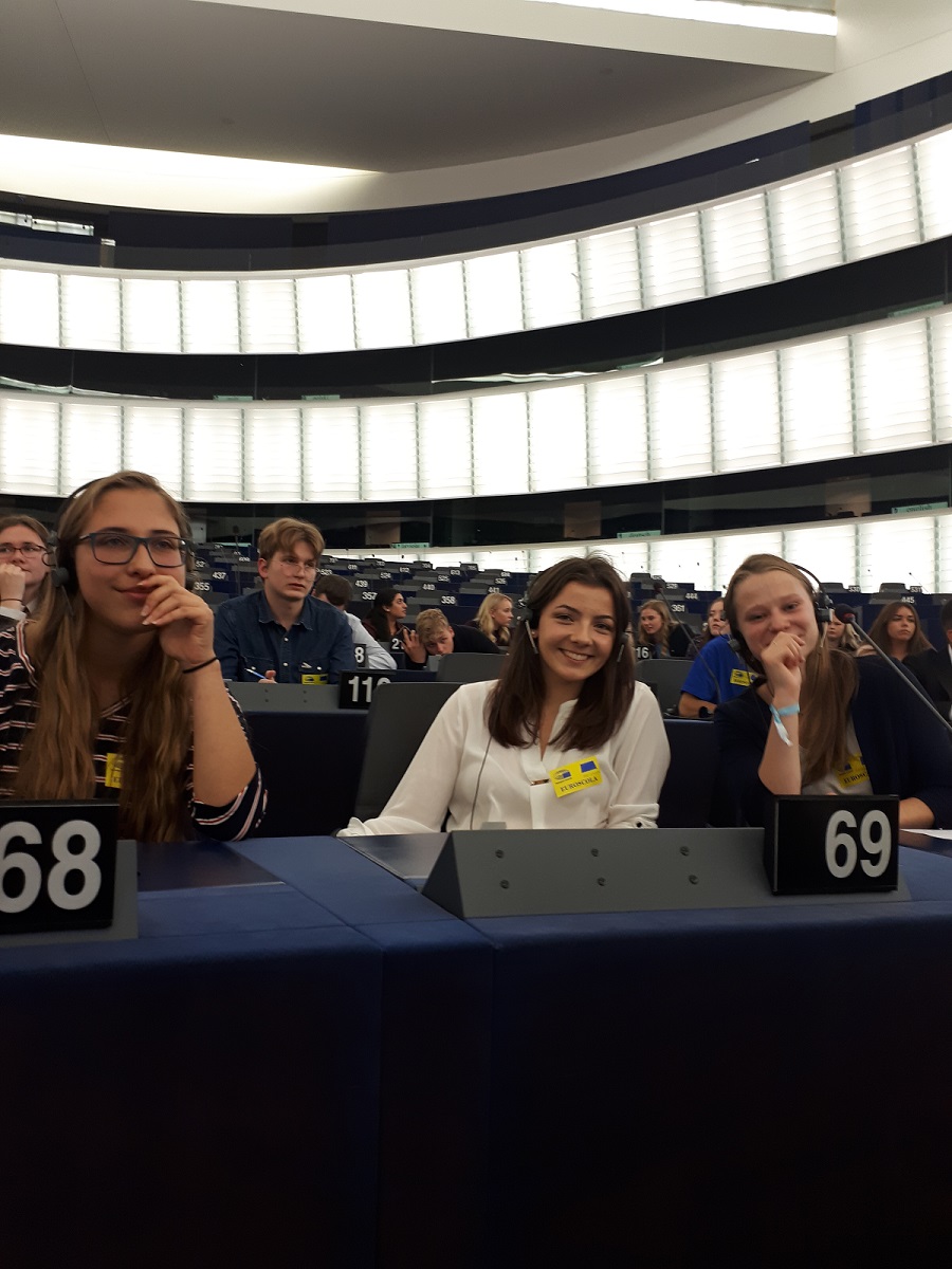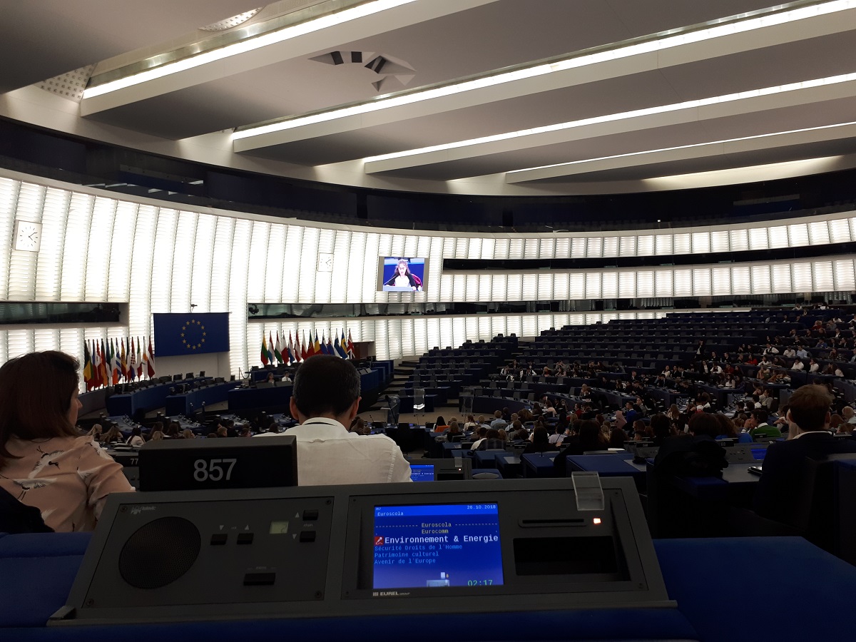 Naslednji dan smo preživeli v Evropskem parlamentu. Sodelovali smo pri diskusijah mladih, kako bi izboljšali EU na področju okolja, migracij, zaposlovanja mladih in drugo. Širili smo naše mnenje o biotehnologiji in mogoče bo kmalu zaradi nas glede tega v EU nastala nova reforma ;) . Predlogi skupine oz. odbora v katerem smo sodelovale (okolje in obnovljivi viri energije), so bili z veliko večino potrjeni. Naša šola je imela tudi posebno nalogo, saj smo bilo odgovorni za uvodno predstavitev slovenske skupine (v njej je bilo še 17 dijakov iz petih različnih srednjih šol) ostalim udeležencem Evrošole. Spoznali smo nove ljudi s cele Evrope in hkrati utrjevali angleščino.