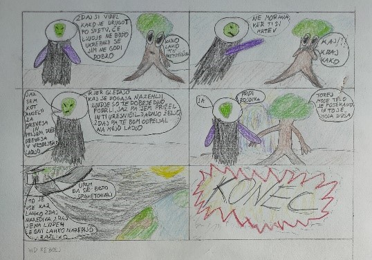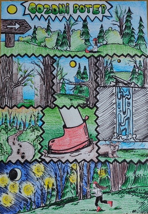 Letos smo se z dijaki udeležili nagradnega stripovskega natečaja z naslovom Gozd in podnebne spremembe, ki ga je razpisal Gozdarski inštitut Slovenije. Dva stripa, ki sta ju ustvarila Lana Plot iz 1.d in Vid Rebolj iz 1.a, sta bila izbrana za razstavo na Gozdarskem inštitutu v Ljubljani.