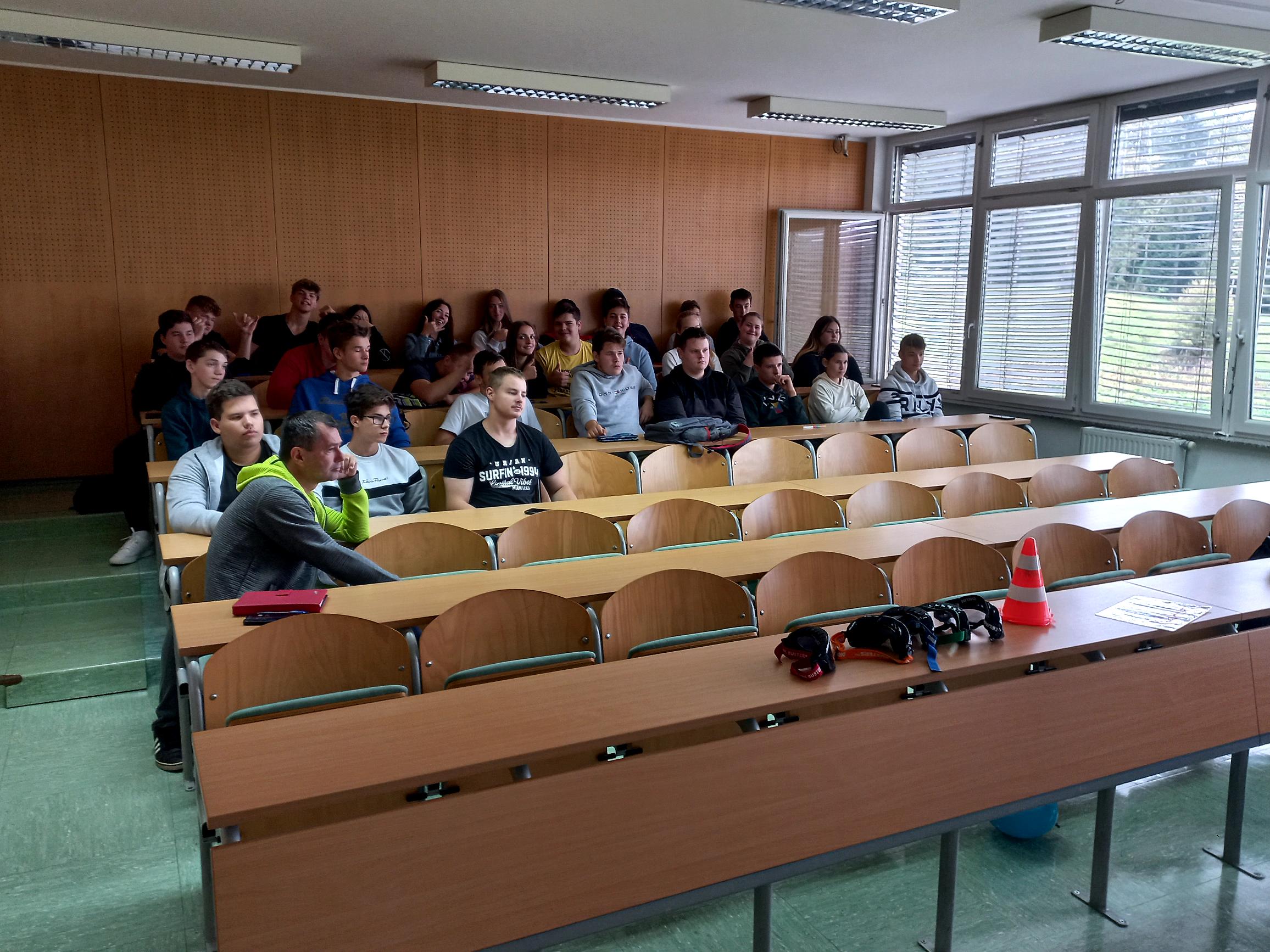 Predavanje z delavnico sta izvedla Zavod Vozim in Policija Novo mesto. Predavanje v okviru Zavoda Vozim je vodil udeleženec v prometni nesreči (paraplegik), zato je bilo predavanje za dijake še posebej zanimivo.