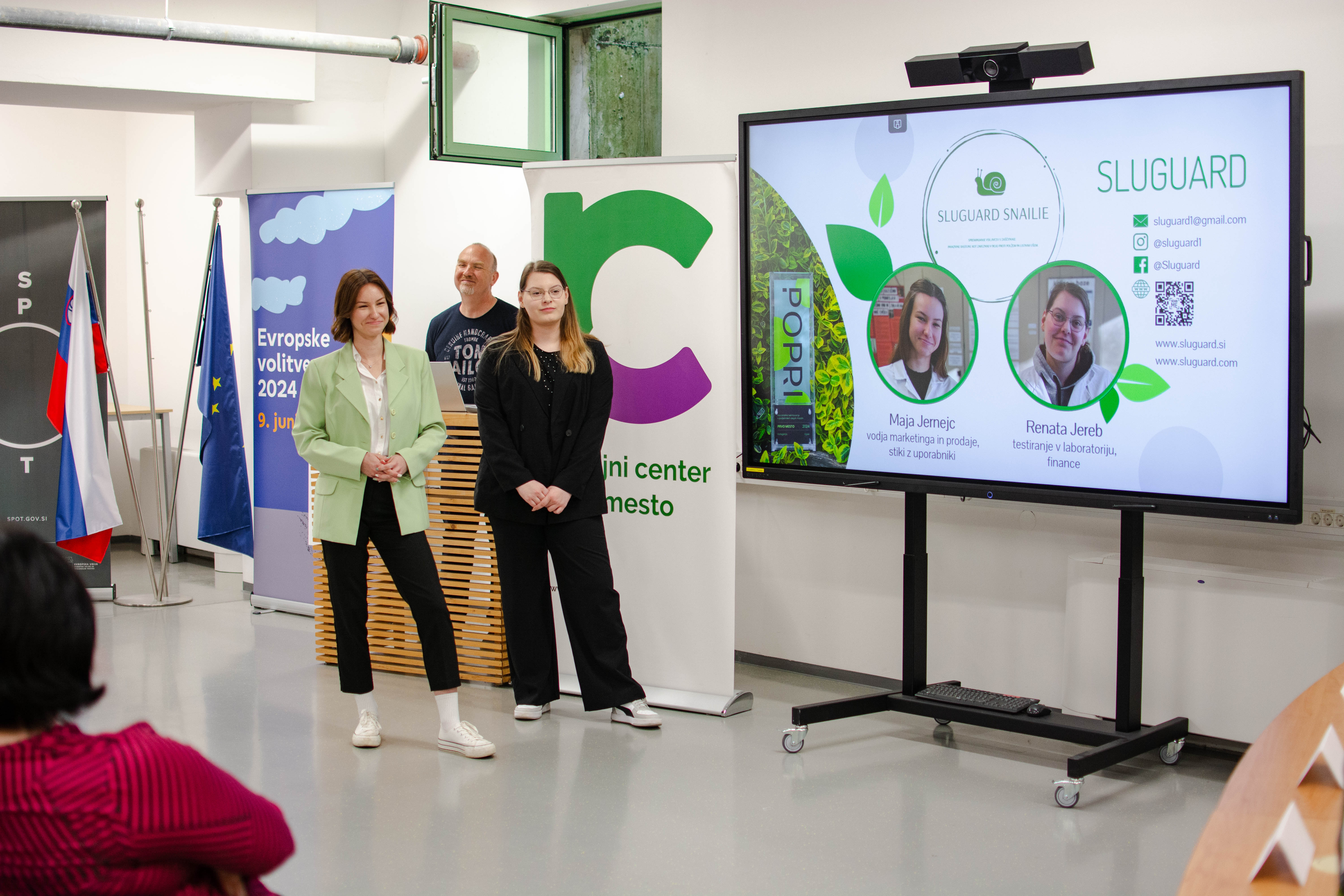 Renata in Maja sta razvili popolnoma naraven in inovativen ekološki pripravek SLUGUARD, ki se uporablja za zatiranje polžev in listnih uši. Glavno učinkovino pripravka tvori mešanica iz tujerodnih invazivnih rastlin, ki rastejo v Sloveniji. Naravni pripravek SLUGUARD je primeren za vrtičkarje in kmetovalce (tudi za ekološke pridelovalce), ki želijo na svojih obdelovalnih površinah uporabljati učinkovite in naravi prijazne pripravke. Pripravek se bo prodajal v dveh oblikah: SLUGUARD Snailie je namenjen uporabnikom, kateri želijo polže in listne uši odgnati iz svojih površin, in SLUGUARD Quickill, ki je namenjen uporabnikom, ki se hočejo polžev in listnih uši znebiti. Pri raziskovalnem delu v laboratoriju je bila njuna mentorica Jana Goršin Fabjan, podjetniško idejo pa sta razvili s pomočjo mentorjev v okviru šolskega podjetniškega krožka (Mitja Turk) ter Razvojnega centra Novo mesto (Janez Gorenc, Anja Hrastnik).